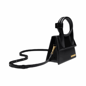 - Circular top handle with a unique knotted detail, showcasing Jacquemus’ signature design elements.
