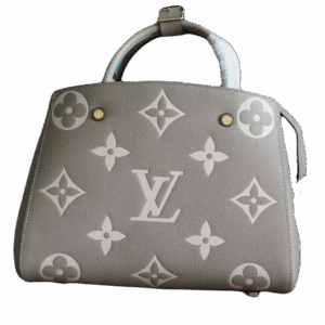 The Louis Vuitton Montaigne in a larger 33 cm size is a luxurious blend of function and elegance. The sophisticated grey leather adorned with white Monogram accents makes it an ideal choice for both business and casual outings.