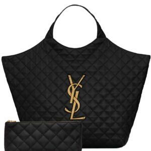 The Saint Laurent Icare Tote Bag is a luxurious and versatile statement piece. Featuring a bold YSL gold logo on quilted lambskin leather, it seamlessly combines fashion with functionality.