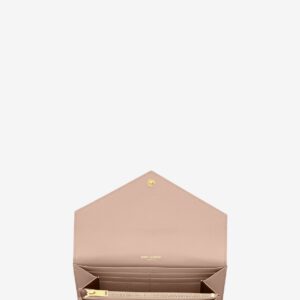 A sleek envelope-style wallet, finished with the iconic gold-tone YSL monogram for a signature touch of glamour.